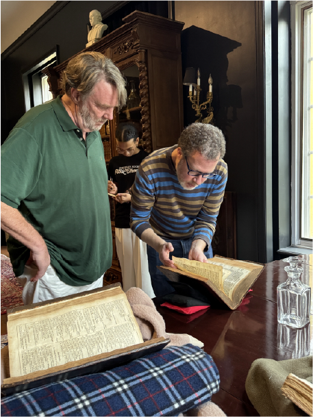 Judges Eric Rasmussen and Zachary Lesser teaching from a Shakespeare Folio and an original Shakespeare source book.